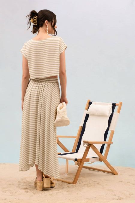STRIPE LINEN BACK TIE DETAIL SLEEVELESS TOP