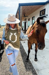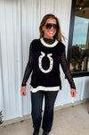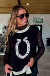 The perfect winter sweater! Features a knit horseshoe design on the front with 3 working side buttons for an extra unique look!