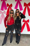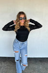 Feminine, flirty, and effortlessly chic—this lace top features a sheer stretchy layered lace bodice sleeves and back. The fitted silhouette hugs in all the right places while still offering comfort and movement. Super cute for layering and perfect for dressing up denim or wearing under jackets — sweet, soft, and so versatile.