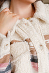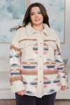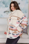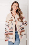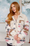 Stay cozy and stylish in our Sedona Sunset Shacket. This must-have item features a sherpa fleece panel, classic brushed Aztec patterned woven fabric, and side pockets. Button front closure keeps you snug in the mid to heavy-weight fabric, while the pockets provide convenience. Make a statement with our Sedona Sunset Shacket!