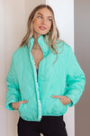 This Slightly Distracted Puffer Jacket brings a cheerful pop of color to your wardrobe. It features a mock neckline, snap up front and quilted puffer for easy layering. Beat the chill in style!