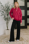Sweater Weather Half Zip High Neck Pullover in Cabernet
