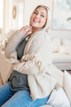 Introducing the quirky and playful Ask Me About It Fringe Cardigan! This mid-weight sweater knit features a V-neckline, looped fringe trim, and button front. Perfect for adding a touch of fun to any outfit.