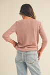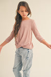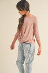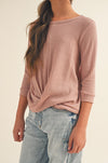 Add a pop of playful charm to your wardrobe with the Bella Twist Top. This blush pink pullover features a fun twist detail at the front and comfy 3/4 sleeves, perfect for mixing style with ease. Whether you're out with friends or just lounging, it keeps you looking effortlessly cute and feeling light all day long.