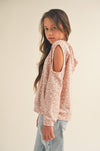 Step into cozy comfort with the Penny Pull Over, a playful twist on your everyday hoodie. Its blush color and delicate floral design add a touch of charm, while the cold shoulder cutouts bring a flirty, fresh vibe. Perfect for layering or lounging, this pullover keeps you comfy and stylish whether you’re out and about or relaxing at home.