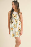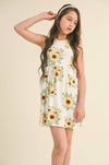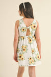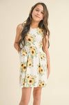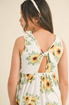 Sleeveless tie back dress with two side pockets. Features an open back with tie closure.