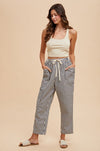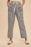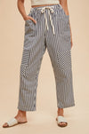 Step out in style with these playful Stripe Barrel Pants. Crafted from soft stripe twill fabric, they feature eye-catching patchwork details and a trendy barrel leg cut. The cropped length and loose fit keep you comfy and cool, while the eyelet waist strap adds a fun, adjustable touch. Perfect for adding a splash of personality to any outfit in a vibrant navy hue.