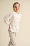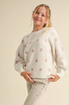 This playful long-sleeve crew neck sweater for tween girls features a fitted design adorned with cheerful polka dots. Perfect for everyday fall wear, it combines comfort and style for girls aged 7 to 14.