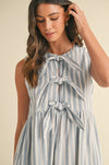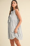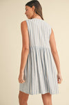 Step into fun and flirty style with the Twirl & Bloom Dress. Featuring vertical textured stripes that elongate your silhouette, this sleeveless mini dress shines with a charming front bow detail. Its babydoll design adds a playful bounce to your look, perfect for twirling through sunny days and lively nights.