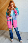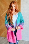 Stay cozy and stylish with our When We're Grooving Open Front Cardigan. The relaxed fit and ombre stripe add a touch of effortless cool, while pom pom accents and balloon sleeves elevate the look. Perfect for any occasion, this cardigan is a must-have for your wardrobe.